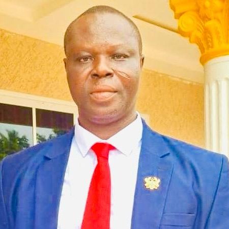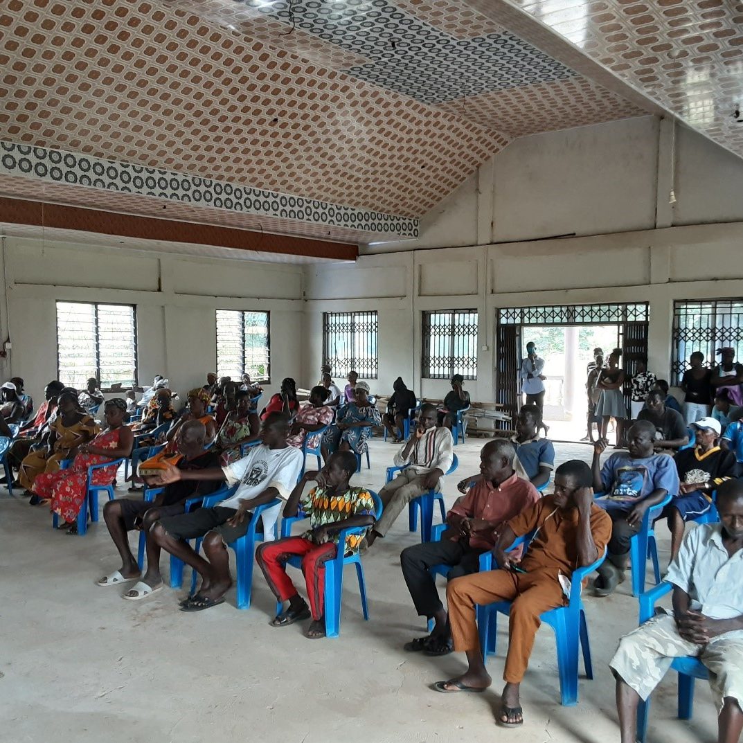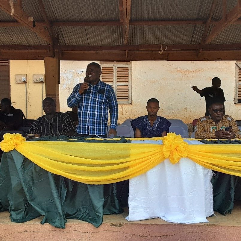 The DCE Hon. Andrew Adu Boahen addressing the Assembly A section of the Assembly Members seated at the meeting An...